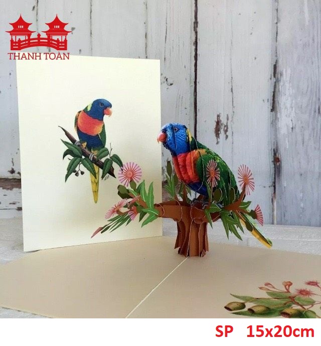 Vietnamese Pop-up Card - Animal 3D Card - Blooming parrot - ASP11
